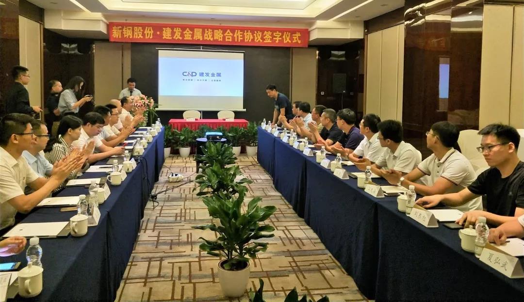 (新鋼股份肖忠東、建發(fā)金屬張清華分別代表雙方簽訂戰(zhàn)略合作協(xié)議)