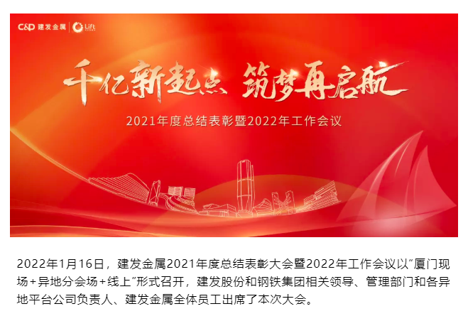 1000億!千億新起點,筑夢再起航——建發(fā)金屬召開2021年度總結(jié)表彰大會暨2022年工作會議